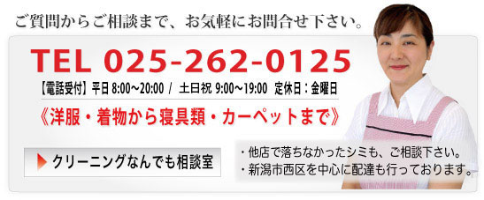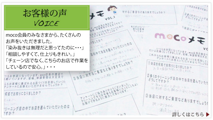新潟市のクリーニング店です。衣類の染み抜き、高級服・お着物のクリーニングなどでお悩みの方、染み抜き自慢「クリーニングもこ」にご相談下さい。西区を中心に配達もOK!